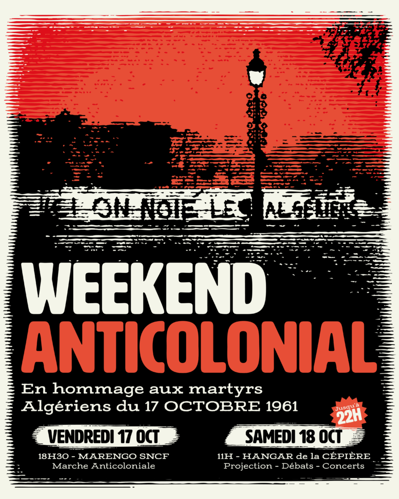 En hommage aux martyrs Algériens du 17 octobre 1961 et en soutien à toutes celles et ceux qui luttent encore contre les États coloniaux, racistes et impérialistes ici comme ailleurs.